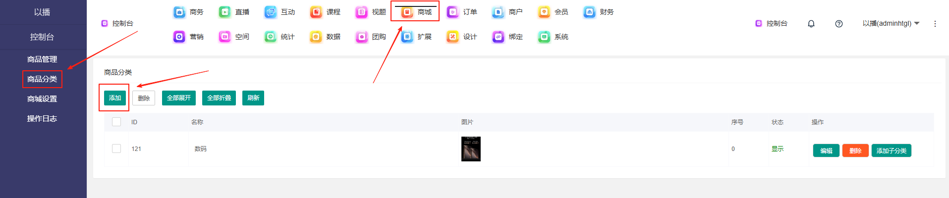 目录 搜索 展开 一、直播前的准备工作1.1.添加主播1.2.添加商品1.2.1.商品标题规范1.2.2.直播间支付解析1.2.3.添加商品分类1.2.4.pc电脑端添加商品1.2.5.手机主播端添加商品1.3.添加外链1.4.添加课程1.5.添加视频(录播/伪直播需要)1.6.添加题库(普通题库、视频题库)1.7.添加优惠券1.8.添加直播间管理员1.9.添加大转盘1.10.积分1.11.红包记录1.12.扩展投票活动1.13.设置快递1.14.添加配送方式1.15.绑定小程序1.16.绑定公众号二、创建直播间2.1.创建手机直播间2.1.1.手机创建手机直播间2.1.2.电脑创建手机直播间预告2.1.3.创建连麦直播间2.2.创建OBS/pc直播2.3.创建录播直播间2.3.1.创建答题直播间2.4.创建伪直播直播间三、给直播间添加商品或外链3.1.电脑端给直播间添加在售商品和讲解卡片3.2.主播端添加在售商品和讲解卡片3.3.给直播间添加在售外链3.4.给直播间添加在售课程四、直播间相关功能/控制4.1.直播间拉黑/禁言用户4.1.1.电脑pc端禁言4.1.2.手机端禁言4.2.直播间发红包/积分/优惠券4.2.1.主播发放优惠券/红包/积分4.2.2.pc端推送优惠券到直播间4.2.3.用户端领取4.2.4.用户发红包4.2.5.直播间发倒计时红包4.2.6.直播间管理发倒计时红包4.2.7.直播间管理员发积分4.3.直播发签到奖励:红包/积分/优惠4.4.直播间清晰度调整4.5.直播间配置调整4.6.直播间添加大转盘4.7.直播间评论区发图片4.8.直播转为伪直播4.9.直播间机器人氛围组4.9.1.添加机器人和评论组/虚拟购买4.9.2.机器人批量/随机发送评论4.9.3.导入机器人评论组4.10.直播间开启长期直播,链接不变4.11.直播间开启录制,视频可回放观看4.12.给用户下发课程链接4.13.下单课程时弹出客服二维码五、直播间更换域名5.1.后台绑定新域名5.2.服务号更换域名5.3.商户号更换域名六、分享直播间(分销)6.1.默认分销比例设置6.2.单独给商品设置分销6.3.上下级关系形成6.4.h5电脑分享直播间6.5.h5手机分享直播间6.6.微信内跳转浏览器打开直播间6.7.下载app打开直播间6.8.小程序打开直播间6.9.查看自己的推荐分享6.9.1.电脑端:有两个查看方式6.9.2.手机端,会员自己查看自己的推荐和业绩6.10.团队管理/pc端查看管理七、订单发货、售后退款7.1.订单发货、退款、状态修改7.2.商家批量发货八、门店8.1.添加门店8.2.给商品添加门店自提和快递邮寄8.3.门店邀请8.4.门店核销 暂无相关搜索结果! 阅读次数:4 本文档使用 MinDoc 发布 1.2.3.添加商品分类 作者:admin 创建时间:2026-01-14 13:29最后编辑:admin 更新时间:2026-01-14 20:13