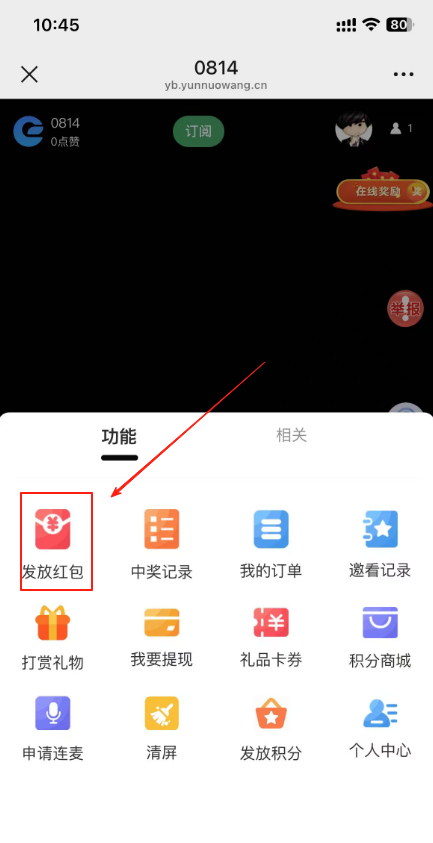 目录 搜索 展开 一、直播前的准备工作1.1.添加主播1.2.添加商品1.2.1.商品标题规范1.2.2.直播间支付解析1.2.3.添加商品分类1.2.4.pc电脑端添加商品1.2.5.手机主播端添加商品1.3.添加外链1.4.添加课程1.5.添加视频(录播/伪直播需要)1.6.添加题库(普通题库、视频题库)1.7.添加优惠券1.8.添加直播间管理员1.9.添加大转盘1.10.积分1.11.红包记录1.12.扩展投票活动1.13.设置快递1.14.添加配送方式1.15.绑定小程序1.16.绑定公众号二、创建直播间2.1.创建手机直播间2.1.1.手机创建手机直播间2.1.2.电脑创建手机直播间预告2.1.3.创建连麦直播间2.2.创建OBS/pc直播2.3.创建录播直播间2.3.1.创建答题直播间2.4.创建伪直播直播间三、给直播间添加商品或外链3.1.电脑端给直播间添加在售商品和讲解卡片3.2.主播端添加在售商品和讲解卡片3.3.给直播间添加在售外链3.4.给直播间添加在售课程四、直播间相关功能/控制4.1.直播间拉黑/禁言用户4.1.1.电脑pc端禁言4.1.2.手机端禁言4.2.直播间发红包/积分/优惠券4.2.1.主播发放优惠券/红包/积分4.2.2.pc端推送优惠券到直播间4.2.3.用户端领取4.2.4.用户发红包4.2.5.直播间发倒计时红包4.2.6.直播间管理发倒计时红包4.2.7.直播间管理员发积分4.3.直播发签到奖励:红包/积分/优惠4.4.直播间清晰度调整4.5.直播间配置调整4.6.直播间添加大转盘4.7.直播间评论区发图片4.8.直播转为伪直播4.9.直播间机器人氛围组4.9.1.添加机器人和评论组/虚拟购买4.9.2.机器人批量/随机发送评论4.9.3.导入机器人评论组4.10.直播间开启长期直播,链接不变4.11.直播间开启录制,视频可回放观看4.12.给用户下发课程链接4.13.下单课程时弹出客服二维码五、直播间更换域名5.1.后台绑定新域名5.2.服务号更换域名5.3.商户号更换域名六、分享直播间(分销)6.1.默认分销比例设置6.2.单独给商品设置分销6.3.上下级关系形成6.4.h5电脑分享直播间6.5.h5手机分享直播间6.6.微信内跳转浏览器打开直播间6.7.下载app打开直播间6.8.小程序打开直播间6.9.查看自己的推荐分享6.9.1.电脑端:有两个查看方式6.9.2.手机端,会员自己查看自己的推荐和业绩6.10.团队管理/pc端查看管理七、订单发货、售后退款7.1.订单发货、退款、状态修改7.2.商家批量发货八、门店8.1.添加门店8.2.给商品添加门店自提和快递邮寄8.3.门店邀请8.4.门店核销 暂无相关搜索结果! 阅读次数:1 本文档使用 MinDoc 发布 4.2.4.用户发红包 作者:admin 创建时间:2026-01-14 17:10最后编辑:admin 更新时间:2026-01-14 20:13
