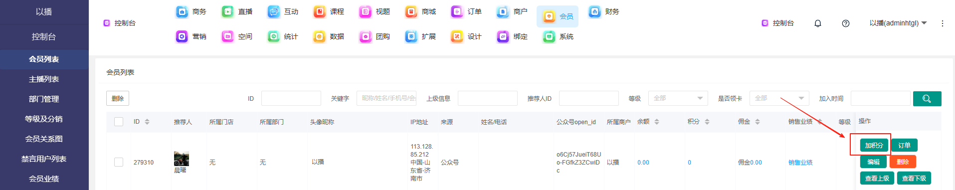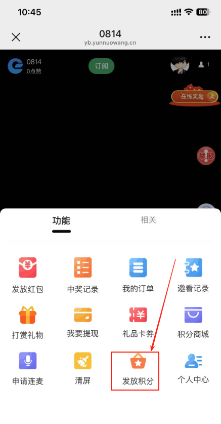目录 搜索 展开 一、直播前的准备工作1.1.添加主播1.2.添加商品1.2.1.商品标题规范1.2.2.直播间支付解析1.2.3.添加商品分类1.2.4.pc电脑端添加商品1.2.5.手机主播端添加商品1.3.添加外链1.4.添加课程1.5.添加视频(录播/伪直播需要)1.6.添加题库(普通题库、视频题库)1.7.添加优惠券1.8.添加直播间管理员1.9.添加大转盘1.10.积分1.11.红包记录1.12.扩展投票活动1.13.设置快递1.14.添加配送方式1.15.绑定小程序1.16.绑定公众号二、创建直播间2.1.创建手机直播间2.1.1.手机创建手机直播间2.1.2.电脑创建手机直播间预告2.1.3.创建连麦直播间2.2.创建OBS/pc直播2.3.创建录播直播间2.3.1.创建答题直播间2.4.创建伪直播直播间三、给直播间添加商品或外链3.1.电脑端给直播间添加在售商品和讲解卡片3.2.主播端添加在售商品和讲解卡片3.3.给直播间添加在售外链3.4.给直播间添加在售课程四、直播间相关功能/控制4.1.直播间拉黑/禁言用户4.1.1.电脑pc端禁言4.1.2.手机端禁言4.2.直播间发红包/积分/优惠券4.2.1.主播发放优惠券/红包/积分4.2.2.pc端推送优惠券到直播间4.2.3.用户端领取4.2.4.用户发红包4.2.5.直播间发倒计时红包4.2.6.直播间管理发倒计时红包4.2.7.直播间管理员发积分4.3.直播发签到奖励:红包/积分/优惠4.4.直播间清晰度调整4.5.直播间配置调整4.6.直播间添加大转盘4.7.直播间评论区发图片4.8.直播转为伪直播4.9.直播间机器人氛围组4.9.1.添加机器人和评论组/虚拟购买4.9.2.机器人批量/随机发送评论4.9.3.导入机器人评论组4.10.直播间开启长期直播,链接不变4.11.直播间开启录制,视频可回放观看4.12.给用户下发课程链接4.13.下单课程时弹出客服二维码五、直播间更换域名5.1.后台绑定新域名5.2.服务号更换域名5.3.商户号更换域名六、分享直播间(分销)6.1.默认分销比例设置6.2.单独给商品设置分销6.3.上下级关系形成6.4.h5电脑分享直播间6.5.h5手机分享直播间6.6.微信内跳转浏览器打开直播间6.7.下载app打开直播间6.8.小程序打开直播间6.9.查看自己的推荐分享6.9.1.电脑端:有两个查看方式6.9.2.手机端,会员自己查看自己的推荐和业绩6.10.团队管理/pc端查看管理七、订单发货、售后退款7.1.订单发货、退款、状态修改7.2.商家批量发货八、门店8.1.添加门店8.2.给商品添加门店自提和快递邮寄8.3.门店邀请8.4.门店核销 暂无相关搜索结果! 阅读次数:1 本文档使用 MinDoc 发布 4.2.7.直播间管理员发积分 作者:admin 创建时间:2026-01-14 17:13最后编辑:admin 更新时间:2026-01-14 20:13