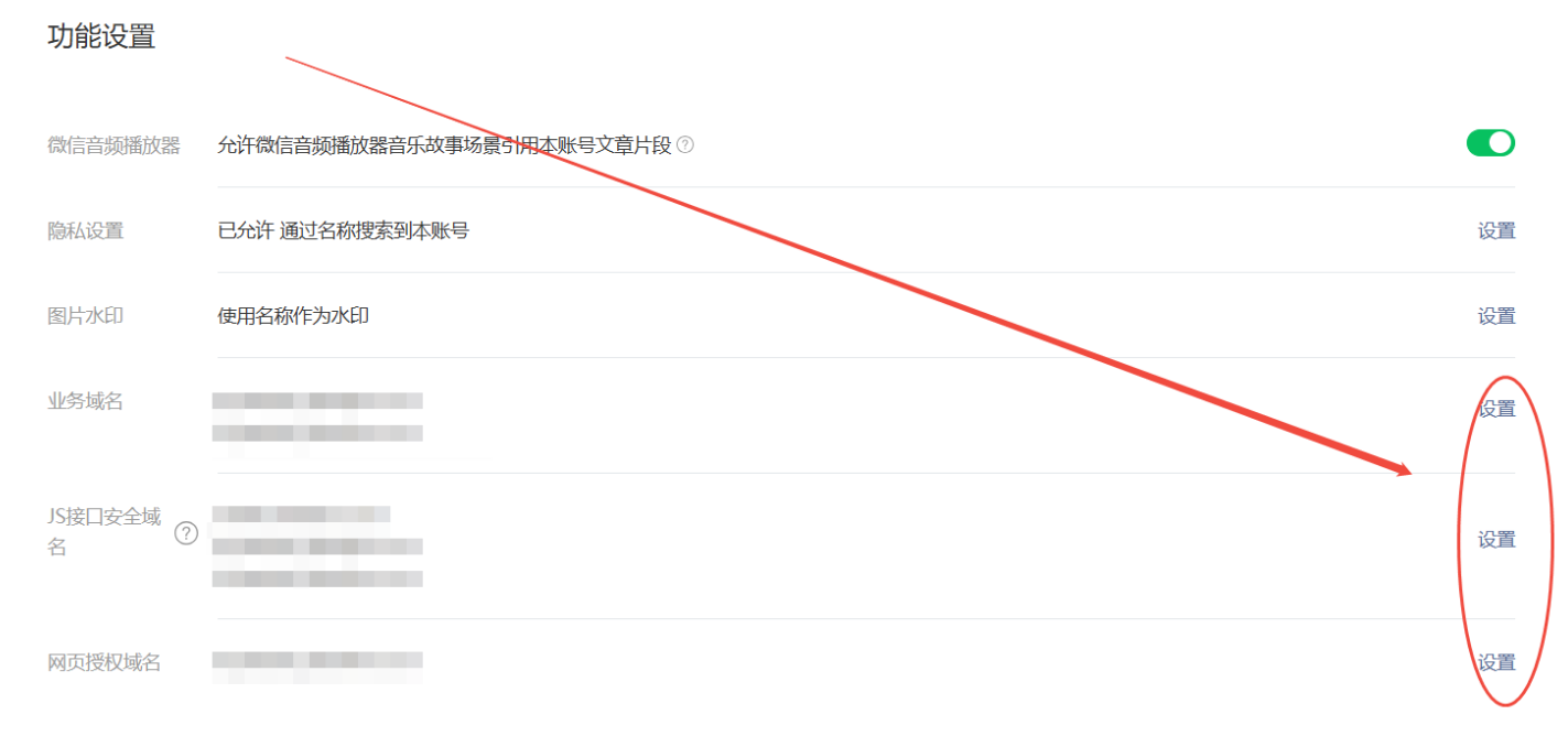 注意:服务号三处域名填写位置,最多填写5个域名,其中 业务域名 可填写3个;JS接口安全域名,可填写5个;网页授权域名,可填写2个,请保证三个位置都有相同的域名!!