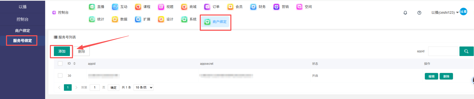 目录 搜索 展开 一、直播前的准备工作1.1.添加主播1.2.添加商品1.2.1.商品标题规范1.2.2.直播间支付解析1.2.3.添加商品分类1.2.4.pc电脑端添加商品1.2.5.手机主播端添加商品1.3.添加外链1.4.添加课程1.5.添加视频(录播/伪直播需要)1.6.添加题库(普通题库、视频题库)1.7.添加优惠券1.8.添加直播间管理员1.9.添加大转盘1.10.积分1.11.红包记录1.12.扩展投票活动1.13.设置快递1.14.添加配送方式1.15.绑定小程序1.16.绑定公众号二、创建直播间2.1.创建手机直播间2.1.1.手机创建手机直播间2.1.2.电脑创建手机直播间预告2.1.3.创建连麦直播间2.2.创建OBS/pc直播2.3.创建录播直播间2.3.1.创建答题直播间2.4.创建伪直播直播间三、给直播间添加商品或外链3.1.电脑端给直播间添加在售商品和讲解卡片3.2.主播端添加在售商品和讲解卡片3.3.给直播间添加在售外链3.4.给直播间添加在售课程四、直播间相关功能/控制4.1.直播间拉黑/禁言用户4.1.1.电脑pc端禁言4.1.2.手机端禁言4.2.直播间发红包/积分/优惠券4.2.1.主播发放优惠券/红包/积分4.2.2.pc端推送优惠券到直播间4.2.3.用户端领取4.2.4.用户发红包4.2.5.直播间发倒计时红包4.2.6.直播间管理发倒计时红包4.2.7.直播间管理员发积分4.3.直播发签到奖励:红包/积分/优惠4.4.直播间清晰度调整4.5.直播间配置调整4.6.直播间添加大转盘4.7.直播间评论区发图片4.8.直播转为伪直播4.9.直播间机器人氛围组4.9.1.添加机器人和评论组/虚拟购买4.9.2.机器人批量/随机发送评论4.9.3.导入机器人评论组4.10.直播间开启长期直播,链接不变4.11.直播间开启录制,视频可回放观看4.12.给用户下发课程链接4.13.下单课程时弹出客服二维码五、直播间更换域名5.1.后台绑定新域名5.2.服务号更换域名5.3.商户号更换域名六、分享直播间(分销)6.1.默认分销比例设置6.2.单独给商品设置分销6.3.上下级关系形成6.4.h5电脑分享直播间6.5.h5手机分享直播间6.6.微信内跳转浏览器打开直播间6.7.下载app打开直播间6.8.小程序打开直播间6.9.查看自己的推荐分享6.9.1.电脑端:有两个查看方式6.9.2.手机端,会员自己查看自己的推荐和业绩6.10.团队管理/pc端查看管理七、订单发货、售后退款7.1.订单发货、退款、状态修改7.2.商家批量发货八、门店8.1.添加门店8.2.给商品添加门店自提和快递邮寄8.3.门店邀请8.4.门店核销 暂无相关搜索结果! 阅读次数:1 本文档使用 MinDoc 发布 1.16.绑定公众号 作者:admin 创建时间:2026-01-14 19:00最后编辑:admin 更新时间:2026-01-14 20:13