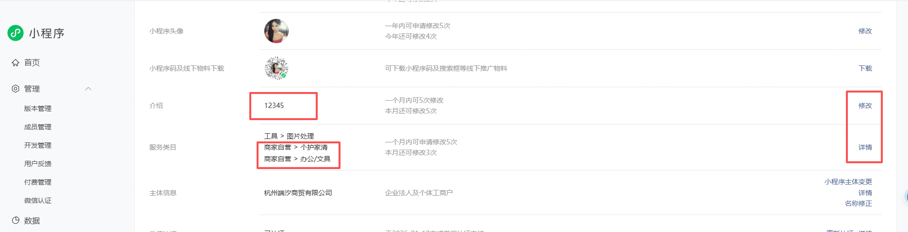 目录 搜索 展开 一、直播前的准备工作1.1.添加主播1.2.添加商品1.2.1.商品标题规范1.2.2.直播间支付解析1.2.3.添加商品分类1.2.4.pc电脑端添加商品1.2.5.手机主播端添加商品1.3.添加外链1.4.添加课程1.5.添加视频(录播/伪直播需要)1.6.添加题库(普通题库、视频题库)1.7.添加优惠券1.8.添加直播间管理员1.9.添加大转盘1.10.积分1.11.红包记录1.12.扩展投票活动1.13.设置快递1.14.添加配送方式1.15.绑定小程序1.16.绑定公众号二、创建直播间2.1.创建手机直播间2.1.1.手机创建手机直播间2.1.2.电脑创建手机直播间预告2.1.3.创建连麦直播间2.2.创建OBS/pc直播2.3.创建录播直播间2.3.1.创建答题直播间2.4.创建伪直播直播间2.5.批量复制创建直播间三、给直播间添加商品或外链3.1.电脑端给直播间添加在售商品和讲解卡片3.2.主播端添加在售商品和讲解卡片3.3.给直播间添加在售外链3.4.给直播间添加在售课程四、直播间相关功能/控制4.1.直播间拉黑/禁言用户4.1.1.电脑pc端禁言4.1.2.手机端禁言4.2.直播间发红包/积分/优惠券4.2.1.主播发放优惠券/红包/积分4.2.2.pc端推送优惠券到直播间4.2.3.用户端领取4.2.4.用户发红包4.2.5.直播间发倒计时红包4.2.6.直播间管理发倒计时红包4.2.7.直播间管理员发积分4.3.直播发签到奖励:红包/积分/优惠4.4.直播间清晰度调整4.5.直播间配置调整4.6.直播间添加大转盘4.7.直播间评论区发图片4.8.直播转为伪直播4.9.直播间机器人氛围组4.9.1.添加机器人和评论组/虚拟购买4.9.2.机器人批量/随机发送评论4.9.3.导入机器人评论组4.10.直播间开启长期直播,链接不变4.11.直播间开启录制,视频可回放观看4.12.给用户下发课程链接4.13.下单课程时弹出客服二维码五、直播间更换域名5.1.后台绑定新域名5.2.服务号更换域名5.3.商户号更换域名六、分享直播间(分销)6.1.默认分销比例设置6.2.单独给商品设置分销6.3.上下级关系形成6.4.h5电脑分享直播间6.5.h5手机分享直播间6.6.微信内跳转浏览器打开直播间6.7.下载app打开直播间6.8.小程序打开直播间6.9.查看自己的推荐分享6.9.1.电脑端:有两个查看方式6.9.2.手机端,会员自己查看自己的推荐和业绩6.10.团队管理/pc端查看管理七、订单发货、售后退款7.1.订单发货、退款、状态修改7.2.商家批量发货八、门店8.1.添加门店8.2.给商品添加门店自提和快递邮寄8.3.门店邀请8.4.门店核销九、添加管理员、添加部门9.1.添加管理员9.2.添加部门十、OBS使用教程10.1.下载安装OBS10.2.设置OBS10.3.OBS直播PPT10.4.调整OBS直播画面清晰度10.5.OBS套用YY美颜插件十一、小程序相关11.1.添加成员11.2.版本管理解除授权11.3.生成appid等参数11.4.修改介绍和类目11.5.更换小程序(管理员绑定小程序)11.6.批量修改小程序(直播间绑定)十二、统计12.1.直播数据12.2.用户时长十三、常见问题 暂无相关搜索结果! 阅读次数:17 本文档使用 MinDoc 发布 11.4.修改介绍和类目 作者:admin 创建时间:2026-01-21 17:53最后编辑:admin 更新时间:2026-01-21 17:53