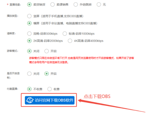 目录 搜索 展开 一、直播前的准备工作1.1.添加主播1.2.添加商品1.2.1.商品标题规范1.2.2.直播间支付解析1.2.3.添加商品分类1.2.4.pc电脑端添加商品1.2.5.手机主播端添加商品1.3.添加外链1.4.添加课程1.5.添加视频(录播/伪直播需要)1.6.添加题库(普通题库、视频题库)1.7.添加优惠券1.8.添加直播间管理员1.9.添加大转盘1.10.积分1.11.红包记录1.12.扩展投票活动1.13.设置快递1.14.添加配送方式1.15.绑定小程序1.16.绑定公众号二、创建直播间2.1.创建手机直播间2.1.1.手机创建手机直播间2.1.2.电脑创建手机直播间预告2.1.3.创建连麦直播间2.2.创建OBS/pc直播2.3.创建录播直播间2.3.1.创建答题直播间2.4.创建伪直播直播间2.5.批量复制创建直播间三、给直播间添加商品或外链3.1.电脑端给直播间添加在售商品和讲解卡片3.2.主播端添加在售商品和讲解卡片3.3.给直播间添加在售外链3.4.给直播间添加在售课程四、直播间相关功能/控制4.1.直播间拉黑/禁言用户4.1.1.电脑pc端禁言4.1.2.手机端禁言4.2.直播间发红包/积分/优惠券4.2.1.主播发放优惠券/红包/积分4.2.2.pc端推送优惠券到直播间4.2.3.用户端领取4.2.4.用户发红包4.2.5.直播间发倒计时红包4.2.6.直播间管理发倒计时红包4.2.7.直播间管理员发积分4.3.直播发签到奖励:红包/积分/优惠4.4.直播间清晰度调整4.5.直播间配置调整4.6.直播间添加大转盘4.7.直播间评论区发图片4.8.直播转为伪直播4.9.直播间机器人氛围组4.9.1.添加机器人和评论组/虚拟购买4.9.2.机器人批量/随机发送评论4.9.3.导入机器人评论组4.10.直播间开启长期直播,链接不变4.11.直播间开启录制,视频可回放观看4.12.给用户下发课程链接4.13.下单课程时弹出客服二维码五、直播间更换域名5.1.后台绑定新域名5.2.服务号更换域名5.3.商户号更换域名六、分享直播间(分销)6.1.默认分销比例设置6.2.单独给商品设置分销6.3.上下级关系形成6.4.h5电脑分享直播间6.5.h5手机分享直播间6.6.微信内跳转浏览器打开直播间6.7.下载app打开直播间6.8.小程序打开直播间6.9.查看自己的推荐分享6.9.1.电脑端:有两个查看方式6.9.2.手机端,会员自己查看自己的推荐和业绩6.10.团队管理/pc端查看管理七、订单发货、售后退款7.1.订单发货、退款、状态修改7.2.商家批量发货八、门店8.1.添加门店8.2.给商品添加门店自提和快递邮寄8.3.门店邀请8.4.门店核销九、添加管理员、添加部门9.1.添加管理员9.2.添加部门十、OBS使用教程10.1.下载安装OBS10.2.设置OBS10.3.OBS直播PPT10.4.调整OBS直播画面清晰度10.5.OBS套用YY美颜插件十一、小程序相关11.1.添加成员11.2.版本管理解除授权11.3.生成appid等参数11.4.修改介绍和类目11.5.更换小程序(管理员绑定小程序)11.6.批量修改小程序(直播间绑定)十二、统计12.1.直播数据12.2.用户时长十三、常见问题 暂无相关搜索结果! 阅读次数:5 本文档使用 MinDoc 发布 10.1.下载安装OBS 下载OBS,安装用于电脑直播的OBS下载按钮(就在直播编辑界面)作者:admin 创建时间:2026-02-24 14:03最后编辑:admin 更新时间:2026-02-24 14:07