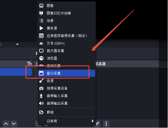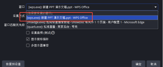- 第四步,添加窗口采集(保持PPT页面是打开的状态 不要最小化)
